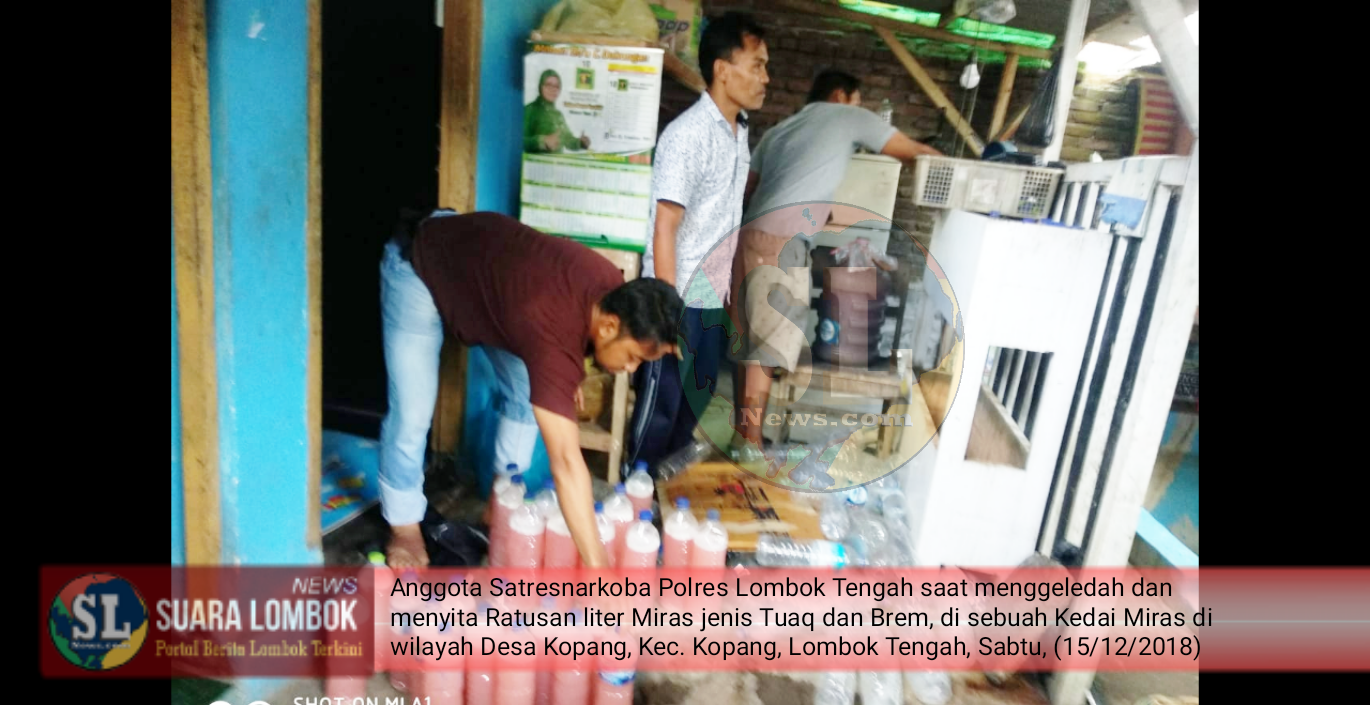 SUARALOMBOKNEWS.COM – Lombok Tengah | Anggota Satresnarkoba Polres Lombok Tengah, Nusa Tenggara Barat (NTB), berhasil menyita 553 liter minuman keras (Miras) Tradisional jenis Tuaq dan Brem di tiga lokasi berbeda di Kabupaten Lombok Tengah, Kamis (15/12/2018).
