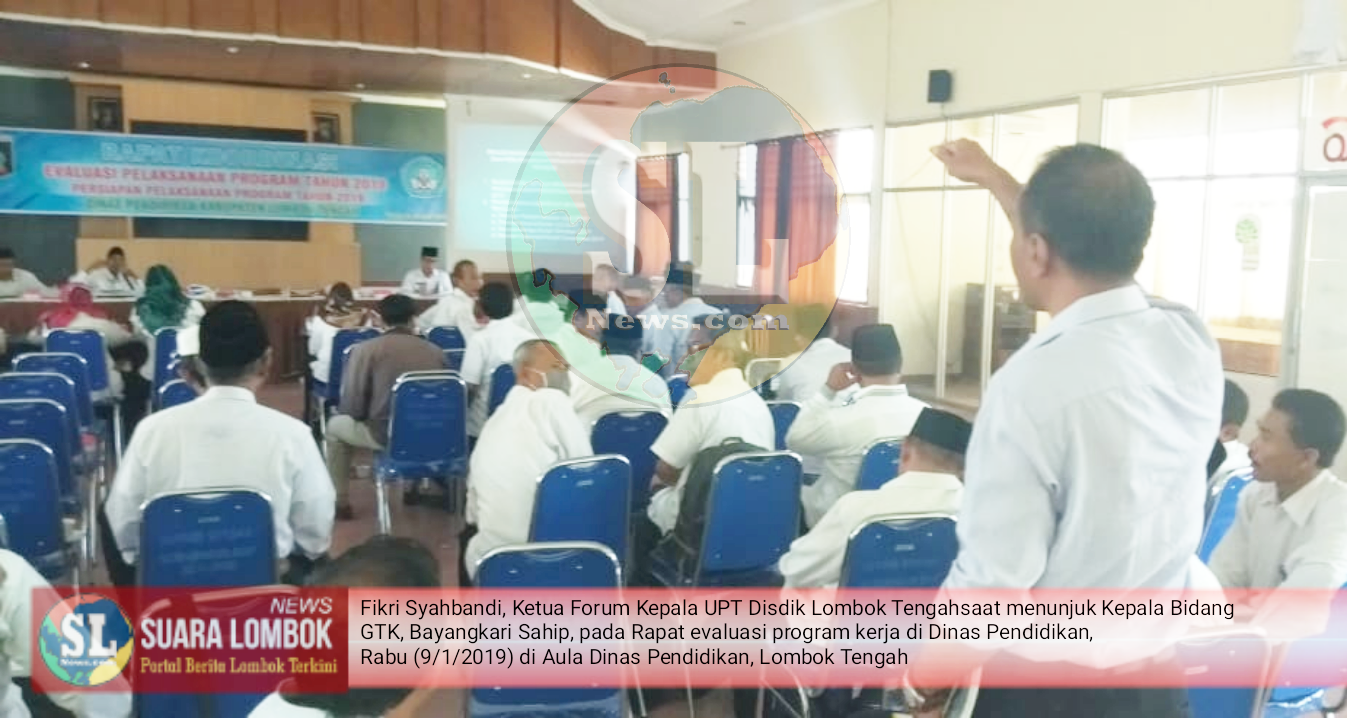SUARALOMBOKNEWS.COM – Lombok Tengah | Rapat evaluasi program kerja di Dinas Pendidikan, Rabu (9/1/2019) di Aula Dinas Pendidikan, Lombok Tengah nyaris ricuh. Hal itu dipicu penyampaian Kepala Bidang GTK, Bayangkari Sahip yang terkesan memojokkan Kepala Unit Pelayanan Teknis (KUPT) Dinas Pendidikan (Disdik) Lombok Tengah, Nusa Tenggara Barat (NTB)