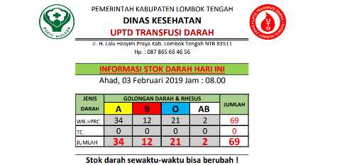 Update Stok Darah di UTD Dikes Lombok Tengah Hari Ini