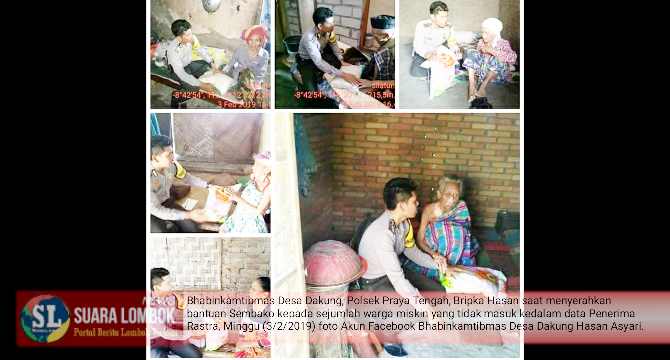 SUARALOMBOKNEWS.com - Lombok Tengah | Kegiatan Anggota Bhabinkamtibmas Desa Dakung, Polsek Praya Tengah, Polres Lombok Tengah, Bripka Hasan yang membagikan Sembako kepada sejumlah, Warga Desa Dakung, Kecamatan Praya Tengah, Kabupaten...