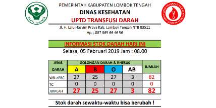 Update Stok Darah di UTD Dikes Lombok Tengah Hari Ini