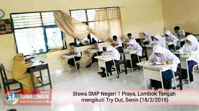 SUARALOMBOKNews.com - Lombok Tengah | Siswa SMP Negeri 1 Praya, Kabupaten Lombok Tengah, Nusa Tenggara Barat (NTB) mengikuti Try Out untuk menghadapi UNBK Tahun 2019.